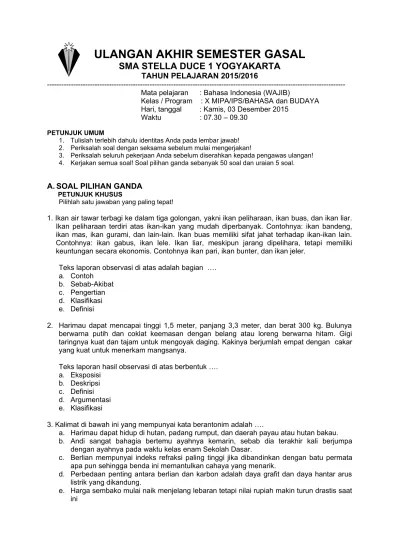Soal pilihan ganda bahasa indonesia teks .